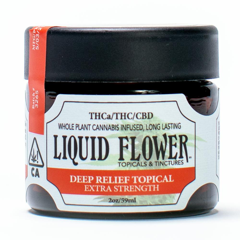 Liquid Flower Deep Relief is a potent and fast-acting topical ideal for those with serious pain, inflammation and skincare issues. Do you suffer from muscle, tendon, organ or nerve pain? You can apply Liquid Flower topically and it will sink deep, penetrating the dermal layers thanks to the transdermal shea butter and other active ingredients. Users report Deep Relief works where other cannabis topicals didn't: slipped disk pain, menstrual cramps, fibroid pain, long-covid pain and numbness.