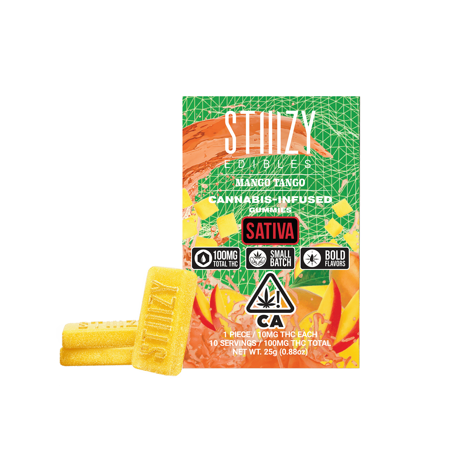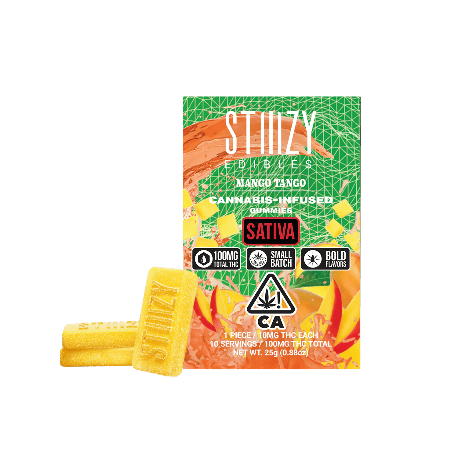 Presenting the latest innovation in STIIIZY's edibles. Cutting-edge formulas incorporate bold flavor blends, resulting in a more delectable and satisfying experience. MANGO TANGO TASTE: Mango, Citrus, Tropical FEELING: Energized, Happy, Creative DESCRIPTION: Mango Tango is a energetic sativa, sweet and tangy flavor that is a blast!