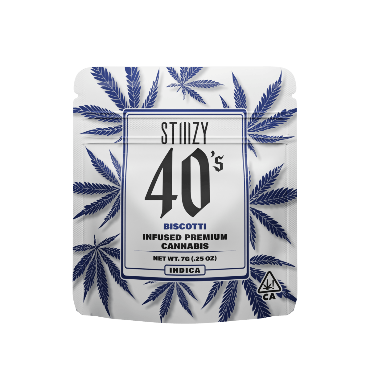 Elevate your flower experience with the new STIIIZY 40’s infused flower. We have expanded our 40’s line by incorporating our premium cannabis flower infused with our finest THC-A Diamonds for an extra punch. We call them 40's because our infused flower s